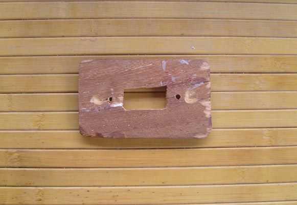 Cuidadosamente Alinee el switchplate viejo y marque donde los orificios de tornillo deben ir y luego perforar. Decidí añadir un fregadero adicional del contador, para que los tornillos a ras con la placa. Mis cajas de distribución tienen dos tornillos que sujetan el interruptor en su lugar. Estos sobresalen ligeramente, así también perforé parciales agujeros en la parte trasera, para dar cabida a estos tornillos, así que el switchplate mentirá al ras contra la caja.
