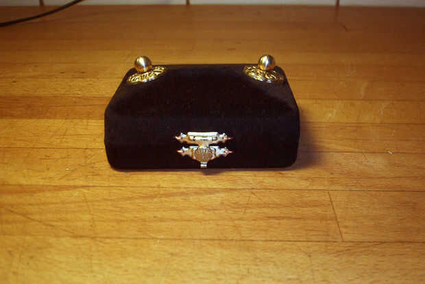 Les presento una caja de metal negro (de una lámpara vieja de fomer) para un adulto steampunker y una fina caja de steampunk muy joven niña cubierta con terciopelo negro.