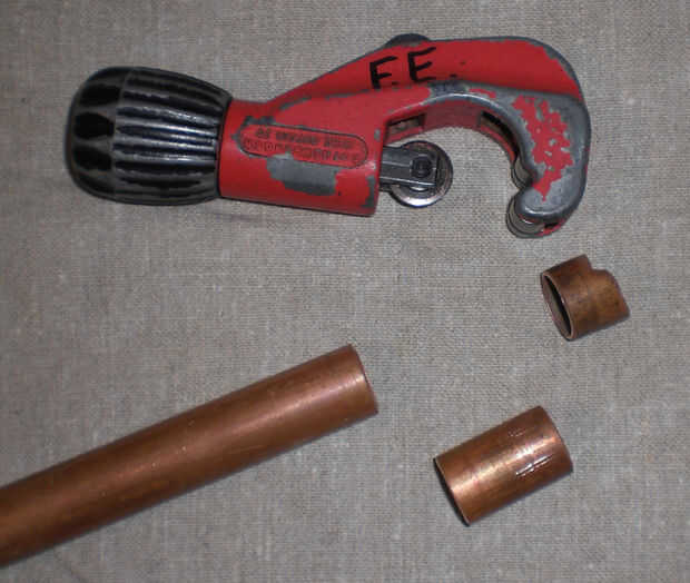 Ahora tienes que cortar algunas piezas de tubos de cobre. Utilizado tubos de 18 mm y 25 mm