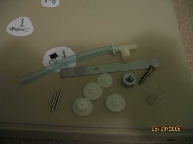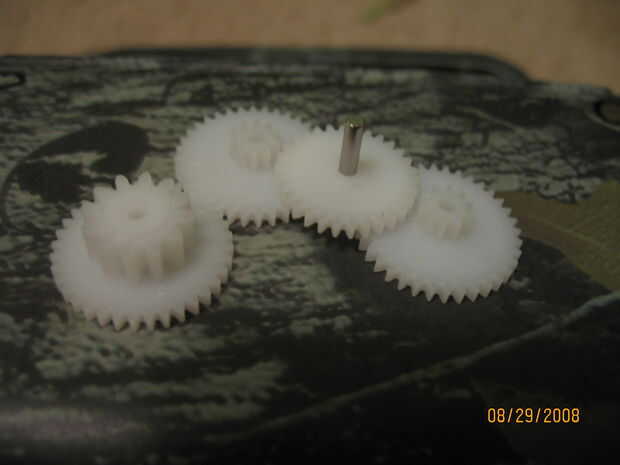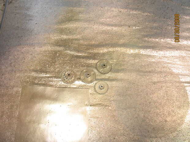 Ahora rocía los engranajes y frente de cobre, la arandela y tres vías oro (latón) y a la izquierda la tuerca y resorte plano. Yo también rocía el tubo de una leve capa de oro, por lo que no es oro o plata pura. Asegúrese de que usted pintar las piezas al igual que el caso, dejando el última capa mostrar a través de algo. Si usted don', como lo hice, se verá demasiado nuevo.