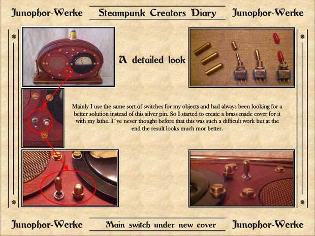 Todos los tornillos de latón hecho están en su lugar la prueba de sonido se ha hecho con éxito, pero aún falta un detalle: una latón hizo tapa para el interruptor principal. Aquí puedes ver mi solución. Un este es el final de mi primer "proyecto de upcycling de uno mismo"