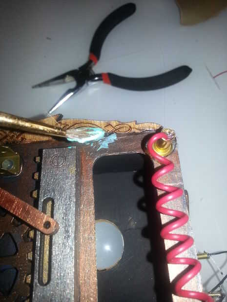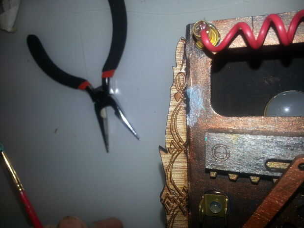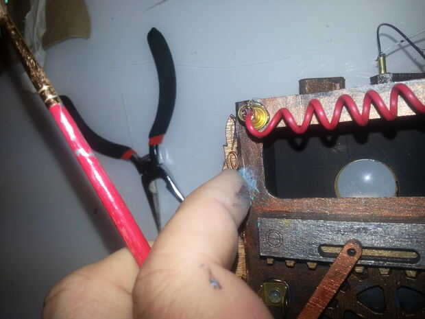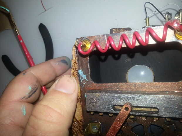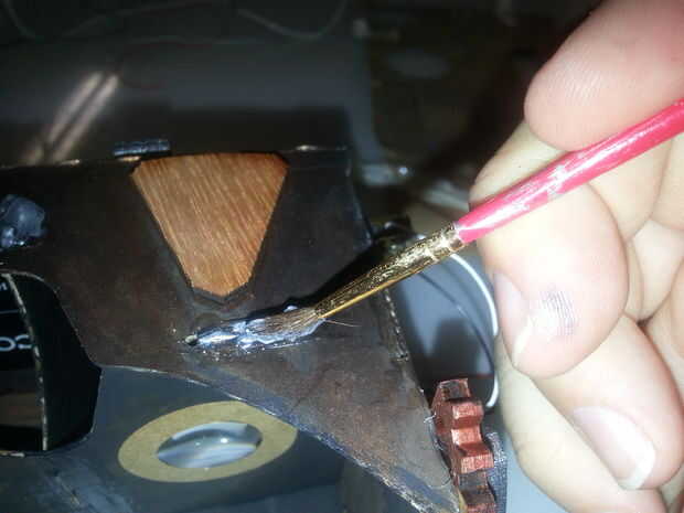 Yo también como pintura cualquier obvio caliente pegamento con poco recto plata de pintura para que luzca como el dispositivo se suelda juntos. Un matiz de blanco aquí y allí da la apariencia del flujo.