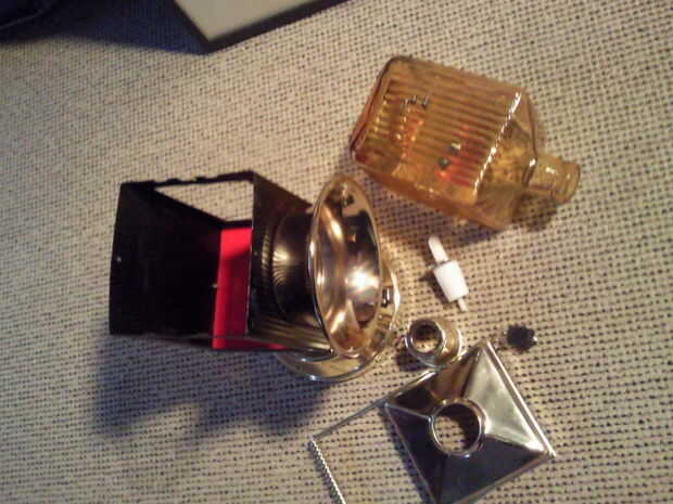 El cableado de la original, sólo el foco fue cambiado a los LEDs. Porque la soldadura se hizo para algo completamente diferente cubrí la carcasa de metal con cinta por el agujero para evitar que los accesos directos o pérdidas.