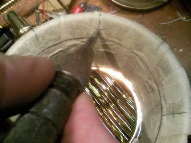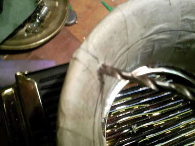 De 0-90-180-270 grados marqué la mitad con brújulas. Utilizar las brújulas también para marcar la distancia desde el borde exterior de los agujeros. Me couldn´t realmente averiguar dónde colocarlos para que adiviné. Y el Sr. Spock couldn´t haberlo hecho mejor...