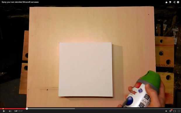 Sosteniendo su pintura de aerosol alrededor de 15cm de la tela, suavemente rocíe líneas de pintura en el lienzo.