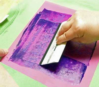 - Difundir la tinta hacia abajo de su plantilla con una escobilla de goma en un ángulo de 45 grados. Levante su plantilla sin quitarla y compruebe tinta vacíos. Establecer la plantilla y volver a imprimir si es necesario.