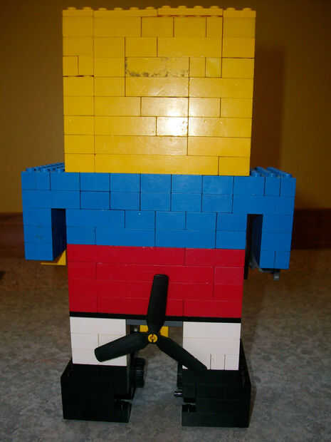 He comprado la Steve Head y luego había hecho el cuerpo. Usé una caja de cartón mediana y 3 colores diferentes de cinta azul. También usé blanco. Cubrir la caja completa con cinta aislante, capas los colores para mostrar los cuadrados de color blanco