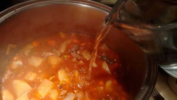 Agregue 1 taza de agua para iniciar y luego agregar agua como necesario o deseado en el resto de la cocción, para obtener la consistencia de stewp que desea.