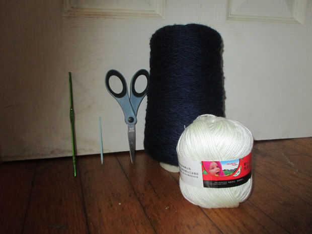 Primero necesita alrededor de 20 onzas de hilado por su color principal y 5 onzas de ajuste opcional. Esta cantidad de hilo, si por un pequeño/delgado tamaño vestido. Recuerde que obtener el hilado más si va a hacer más grande! Para reducir el costo, puede usar hilado de acrílico. He utilizado hilo de lana, que es algo chillona pero es cálido y resistente al agua. Obtener hilados de peso (doble punto peso o peso 3) DK. Tengo mi hilo de lana de peso DK azul marino para alrededor $16 la libra. Las otras cosas que usted necesita son su gancho de ganchillo (tamaño G/6), una aguja de hilo, tijeras, y dependiendo, puede que desee una camiseta para llevar debajo de él.