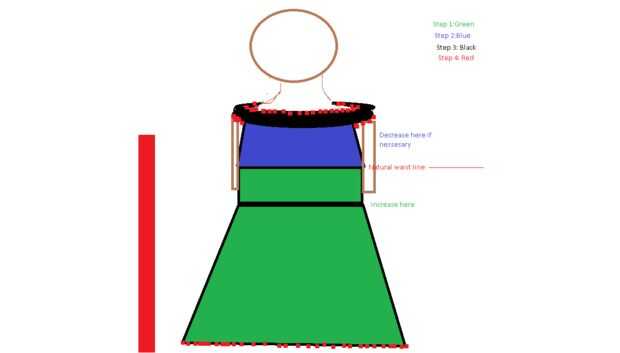 Había mirado para los vestidos de ganchillo en línea antes, pero no pudo encontrar un patrón de un vestido que no era sin mangas gratis, claro. Por lo tanto, he creado este patrón de vestido. Para hacer esto más simple, sólo quiero describir lo que vas a hacer antes de empezar. Van a comenzar en la línea de cintura natural, crochet hacia el fondo, luego volver a donde empezamos y crochet para arriba para que se vea como un vestido sin tirantes. A continuación vamos a añadir las mangas y el adorno de ganchillo y la cinta. También hice una versión de esquema de esto. Puede ser más fácil de ver en el diagrama que leer:)