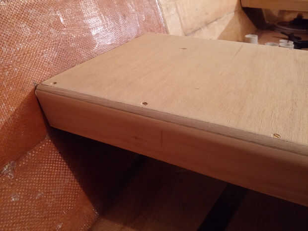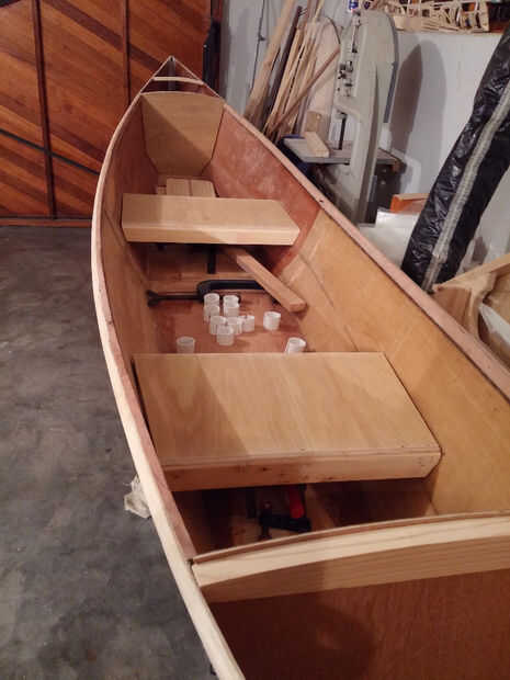 Cada asiento se construyó de la misma madera contrachapada de 4mm como el resto de la embarcación, con tres piezas de soporte de madera de pino. Opté por cerrar la parte inferior de los asientos con más madera.