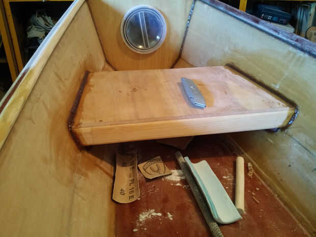 Llegó el momento para pegar los asientos en su lugar. Tenían que descansar sobre los soportes del asiento, con la función añadida de rigidez en el barco.