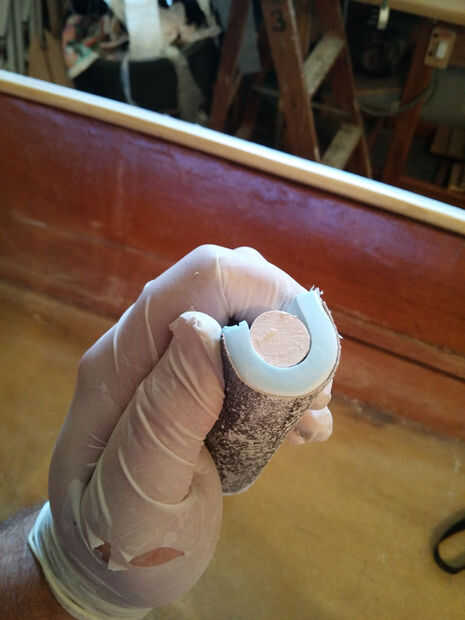 En esta última etapa del juego encontré una solución para mis dedos (reales) de lija en blister. El problema a lo largo había sido cómo lijar las costuras curvadas en el barco eficientemente.