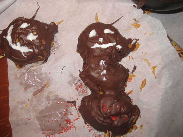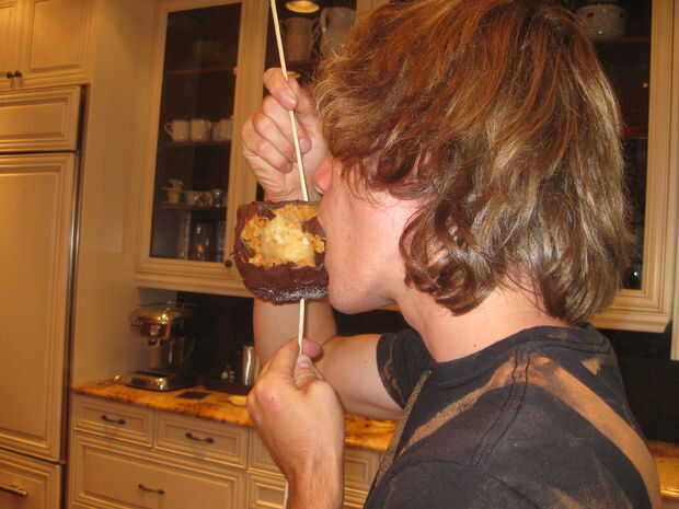 He sentido a hacerlo hace 13 meses y 20 días exactamente. Recuerdo el día que pensé para arriba. Estaba en Utah con mi amigo Phin a ir subiendo pero todavía en su casa. Tuvimos literalmente una tonelada (multa, que es una exageración) de plátanos que ya estaban girando negro con madurez. Aunque eran muy dulces! Eso es lo que les sucede como maduran demasiado! Hablamos de posibles usos para los plátanos y lo que se me ocurrió fue tomando todos ellos mushing para arriba y ponerlos en el congelador, así que mantengan. Entonces pensó en la cookie de proceso de fabricación y una idea aún más indignante; derramar miel sobre ellos, cosas en masa para galletas, cubierta de azúcar en polvo y capa de chocolate. Todos ellos rechazaron me (demasiado dulce?). Por lo que se redujo a mush en bola, helada, cubierta de capas de mantequilla de maní y chocolate. Nummy :) Lamentablemente nos quedó sin tiempo para realmente terminar haciéndolos y sólo conseguido hasta ahora en cuanto a la congelación de la bola de plátano... Hoy voy a terminar ese trabajo :)