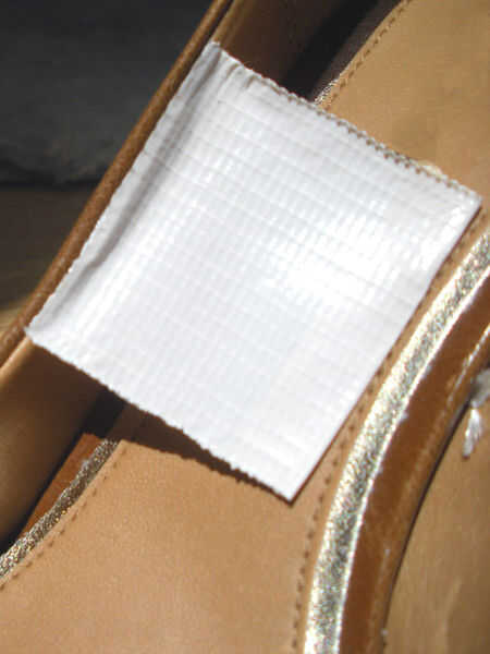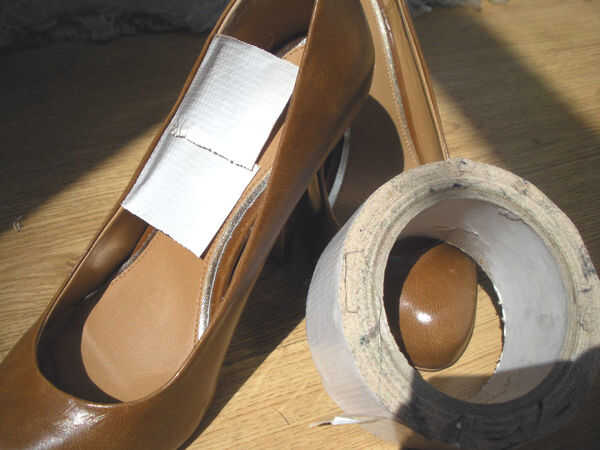 Una cinta adhesiva revestida plástico (tiendo a usar cinta adhesiva en lugar de cinta aislante ya que tiende a funcionar mejor) puede enmascarar fuera el interior de la zapatilla hasta el interior costura parada de pintura está en el interior de la zapatilla y luego escamas en sus medias cuando usarlos más adelante.