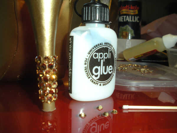 Una pequeña cantidad de pegamento alrededor de la base del cristal normalmente dejo el como se seca claro y ayuda a da palo extra a la piedra como la de un zapato y tiene que ser estable debido al desgaste.