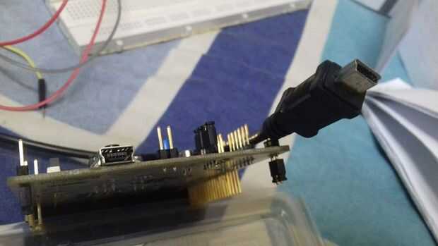 Se necesita un "USB tipo A mini-B cable" para conectar la placa STM32 a su PC como se muestra en la figura. Con este cable Conecte STM32 junta a su PC.