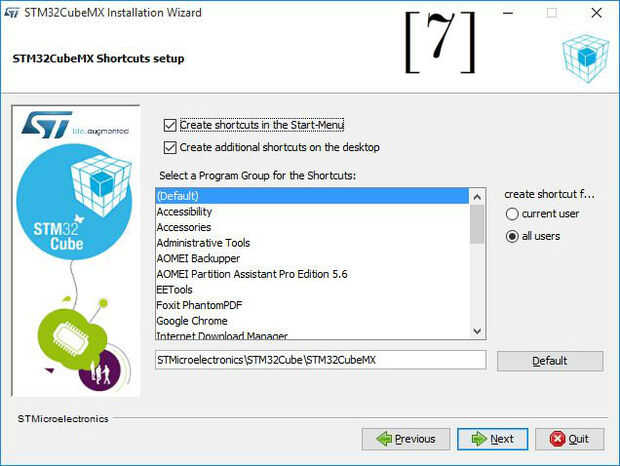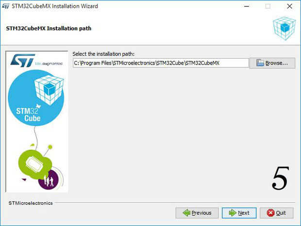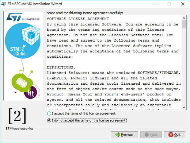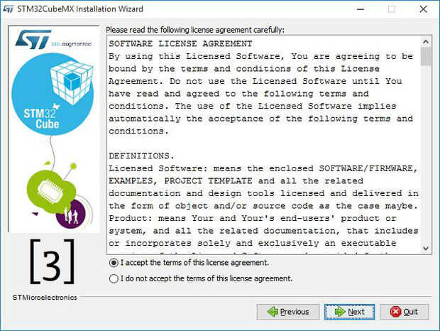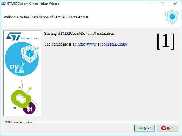 Abra la carpeta extraída y vaya a "stm32cubemx". Allí, haga clic en "SetupSTM32CubeMX-4.11.0" para comenzar a instalar el STM32 cubo MX Software. Aparecerá una ventana como esta: {ver figura [1]}