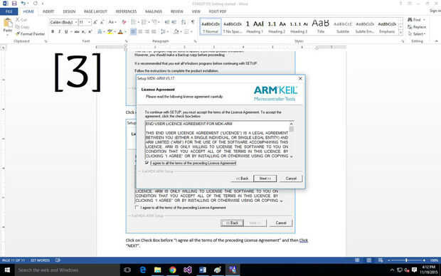 Haga clic en casilla de verificación antes de "Acepto todos los términos del contrato de licencia anterior". {Ver figura [3]}
