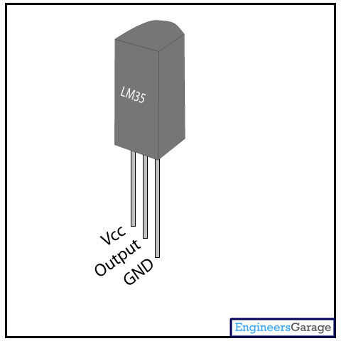 Perno del sensor de temperatura LM35 se muestra en la figura [1]. Hoja de datos del LM35.