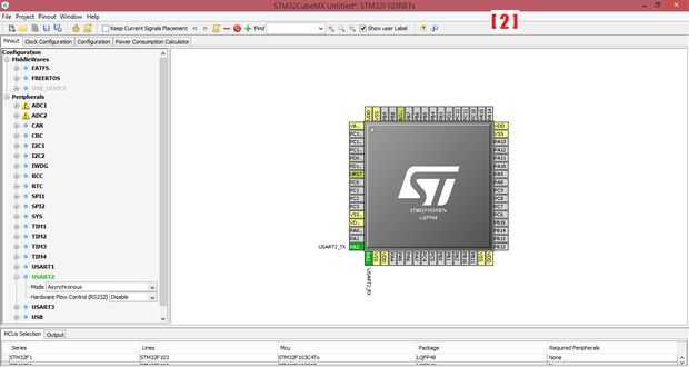 Abra STM32CubeMX. Haga clic en 'Nuevo proyecto'. De la serie selecciona 'STMF1', 'líneas' Seleccione STM32F103. Lista de MCU, seleccione 'STM32F103RBTx'. Haga clic en "Aceptar".