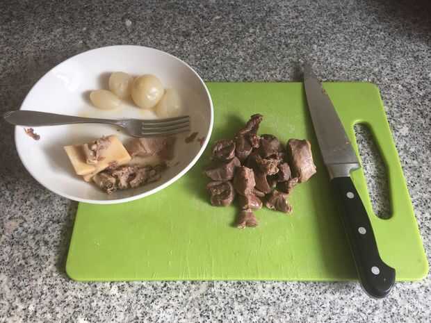 - O limpiar la carne del hueso y del tejido conectivo, picar para arriba y ponerse de nuevo en el caldo con verduras