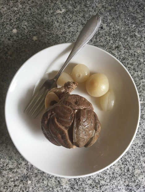- Sacar la carne, una cebolla y reservamos el caldo con verduras solo, dejando la carne y las cebollas para una extensión de ensalada de carne de res