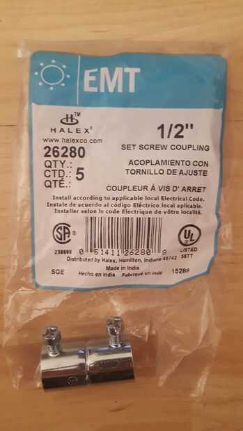 (1) bolsa de 1/2" acoplamiento de tornillo de ajuste (misma historia... dos necesarios, podría hacer múltiplos... compré un bolso) * opcional *