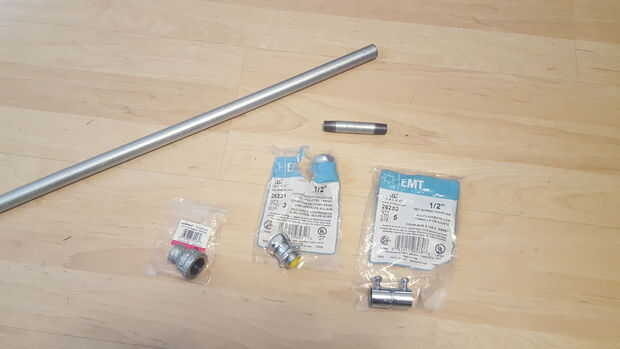 • Algo para cortar el conducto con. Usé una sierra para metales; una rueda de corte en una herramienta giratoria como un Dremmel, funcionaría así