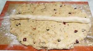La masa vuelva a colocar la encimera de la cocina enharinada o Silpat enharinada y tomarte la masa y aplanar hacia fuera. Véase el cuadro 1.