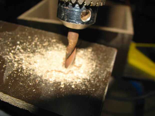 Encontré la broca de tamaño correcto para el gato que tuve y perforado a través de la caja.