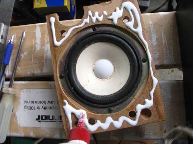 Mía se sentó adelante, así que había partes del altavoz que quisiera tocar la caja si fuera intentar enroscar directamente. Esto significaba que tenía que usar algo para crear un espacio entre la caja y el soporte de altavoz metálico.