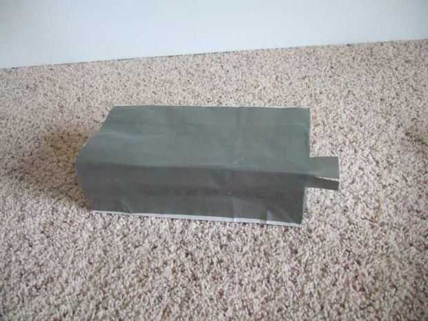Añadir las tiras de cinta adhesiva a lo largo de los cuatro bordes más largo de la bolsa (no los bordes de la parte inferior), que se extiende la cinta extra pulgadas más allá de la parte inferior. Cortar este exceso por la mitad y cada parte del doblez hacia abajo.