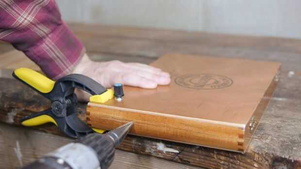 Tenga en cuenta que en la perforación de un agujero en una costura existe un alto riesgo de astillado madera como se puede ver en la imagen final de la serie anterior. Para minimizar ese riesgo, es importante fijar firmemente la caja cerrada para que ningún movimiento es posible. No hacerlo y el agujero terminó un poco desordenada debido a él.