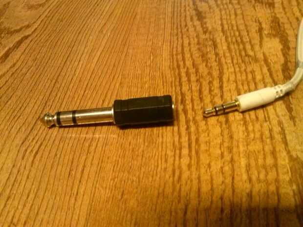 Si los auriculares tienen una salida de 3,5 mm o 1/8", entonces puede que necesite un adaptador de pulgadas de trimestre. Usted puede comprar uno de estos adaptadores en tiendas que venden equipo audiovisual, como Best Buy, Guitar Center, Radio Shack, etc..