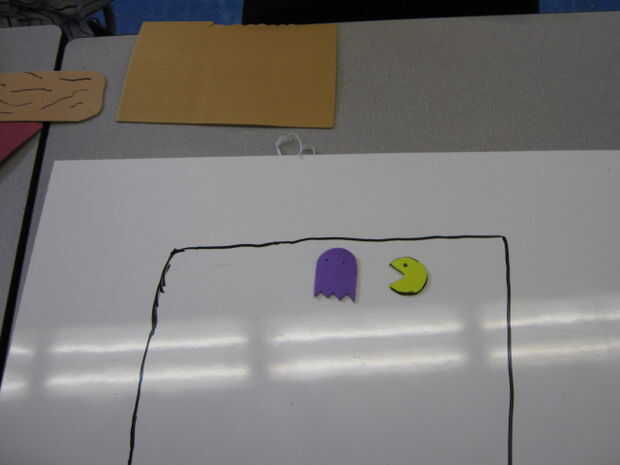 Mover los Pac-hombres alrededor persiguiendo los fantasmas.  Cuadro por cuadro de él comer a los fantasmas.