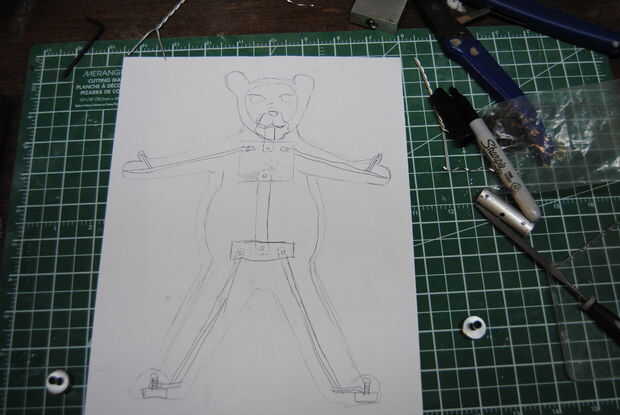 así que el primer paso que hice fue sacar el tamaño y la forma que más o menos quería mi marioneta que. y dentro de ese dibujo simple de mi marioneta bosquejar hacia fuera lo que podría Quiero mi armadura para parecerse a. Este proyecto era otra vez un diseño simple que no necesita ser excesivamente complicado, pero en profesionales armaduras componen principalmente de bola de acero y juntas de enchufe y bares es porque tienen que ser capaces de realizar la tarea muchos una y otra vez durante meses y meses y con rótulas cuando perder se puede simple hacen una rebanada muy pequeña en el títere y apriete otra vez. para mis propósitos era más entonces suficiente una armadura de alambre simple. es importante seguir sus planes para evitar sorpresas más adelante.