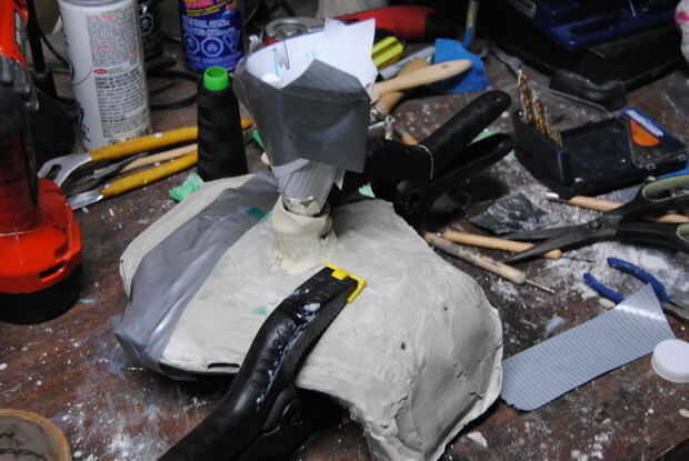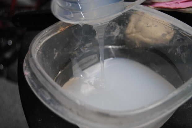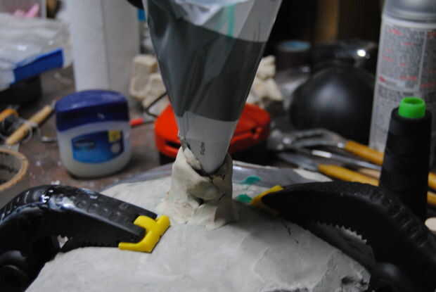 ahora para este molde taladré un agujero en la zona de la espalda y esto es para que pueda mantener el molde cerrado y tiene algunos agujeros de ventilación pequeñas y simplemente Vierta la silicona líquida en el molde cerrado y esperar a la curación. en otro caso puede verter simplemente o cepillo en su material por separado en dos piezas y luego rápidamente aplasta los juntos pero en este caso estoy utilizando una silicona muy viscosa por lo que yo sabía que esto podría funcionar mejor.
