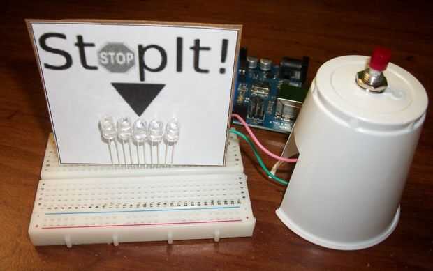 Conectar Arduino a tu ordenador. Los LEDs deben comenzar a parpadear. Si no, es posible que ellos han insertado mal. Trate de poner en sentido contrario. Los conductores de largo tienen que estar en la izquierda. Una vez que están parpadeando, necesita ver para cuando el LED (rojo) del medio, que es cuando usted presiona el botón. Si usted era acertado, la media luz deberá parpadear encendido y apagado rápidamente. Ahora el juego se acelera y los LEDs parpadean más rápidamente. Seguir jugando hasta que accidentalmente Pulse el botón cuando se enciende un LED distinto de aquél en el centro. El juego se detiene. Ver y contar cuántos se iluminan hacia arriba ver tu como bien hiciste. 5 ser el mejor y 1 el peor. ¡ Felicidades! Usted acaba de hacer un juego de Arduino!
