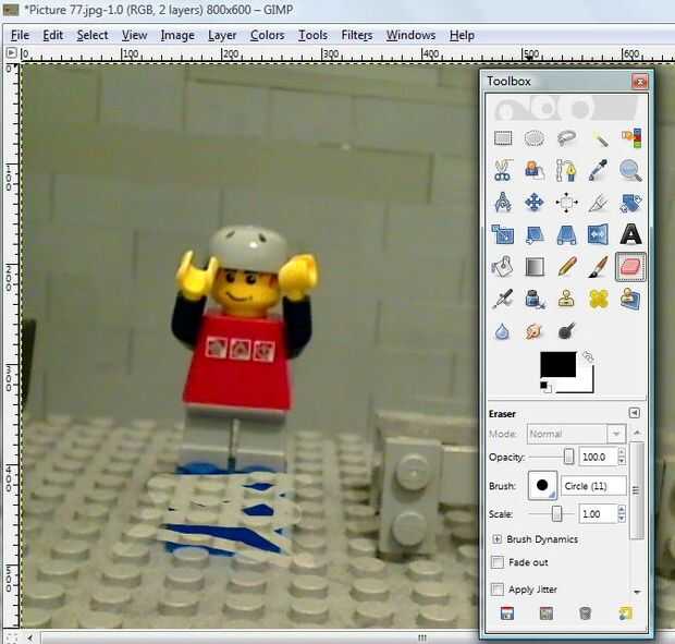 Luego use la herramienta Borrador para quitar el "thingymagig" que sostiene la minifigura.