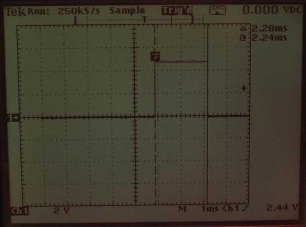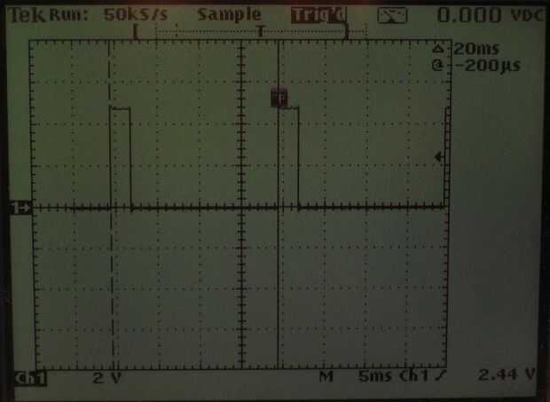 El motor servo para el eje y es también muy fácil de conducir. El servo en realidad contiene un tablero de conductor del motor internamente. Un determinado tipo de forma de onda digital se envía al servo para hacerlo mover en cualquier lugar entre la extrema derecha y las posiciones hacia la derecha contador. Capturas del alcance de esta forma de onda de servo están en los cuadros adjuntos.
