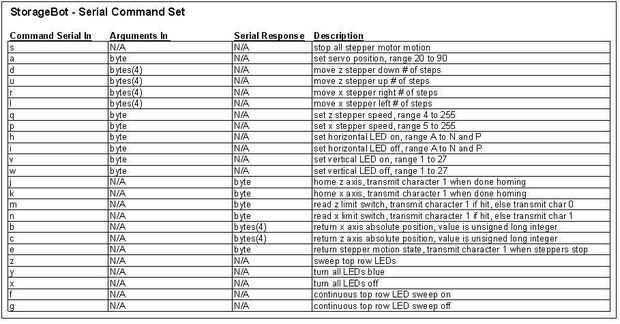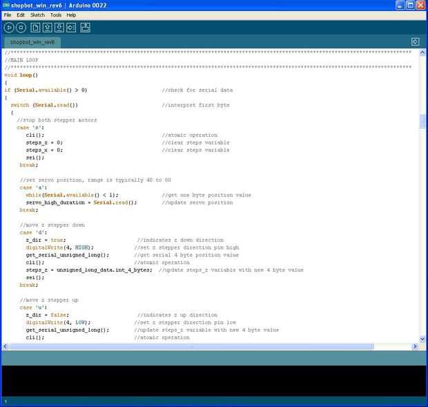 El código que se ejecuta en el Arduino básicamente traduce comandos serie de la computadora de la PC. Estos comandos se utilizan para realizar lo siguiente:
