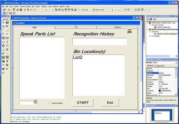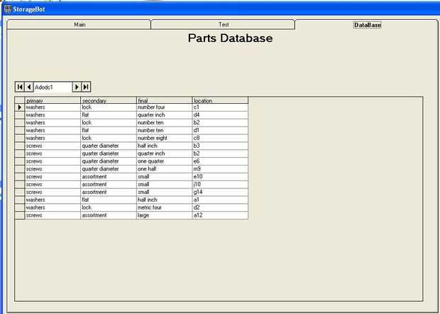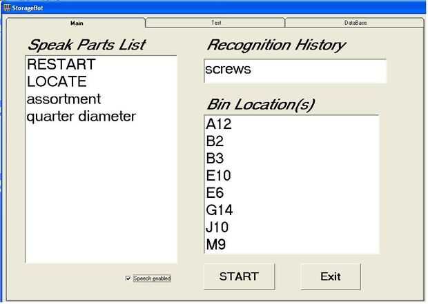 Hay 2 funciones principales del software de aplicación. Uno es manejar el discurso como salida de voz reconocimiento y texto a voz. La segunda función es tomar los comandos de voz y búsqueda de las partes asociadas y bin ubicaciones dentro de una base de datos master. Esta base de datos master fue generado originalmente en Microsoft Access.