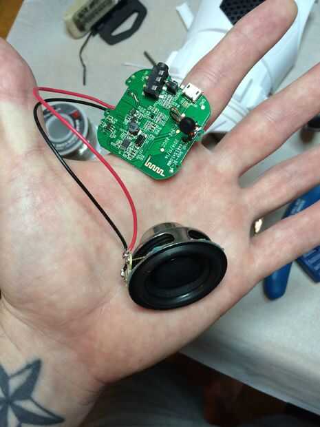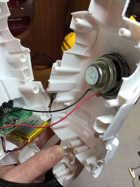 Primero tuve que prolongar los cables del altavoz para acomodar el diseño previsto. También tenía que quitar el tapón terminal del altavoz en la placa de circuito permitir el montaje de la Junta en el interior de la cavidad, el supuesto cableada (soldadura) los altavoces a la Junta.