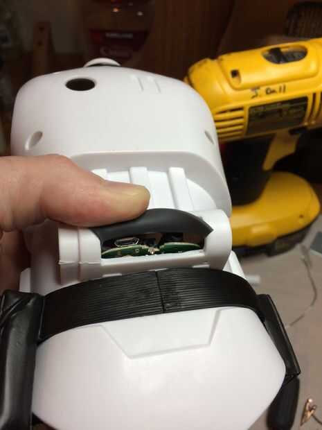 También necesitaba cortar abierto un puerto de acceso en la parte posterior de la Storm Trooper para permitir la posibilidad de conectar el Bluetooth a USB para la recarga así como acceso al encendido apagado botón. También instalé una aleta de goma gris en la parte posterior para permitir que la Junta se encubrió y ocultos a la vista.