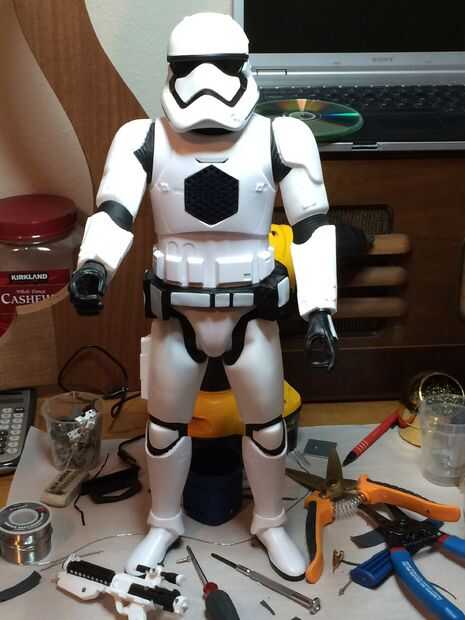 Es interesante, pero el interior del molde de abdomen y pecho de Storm Trooper proporciona superficies de montaje casi perfecta para el hardware de Bluetooth (excepto el altavoz). Tuve que suplementar un poco el tablero para acceder...