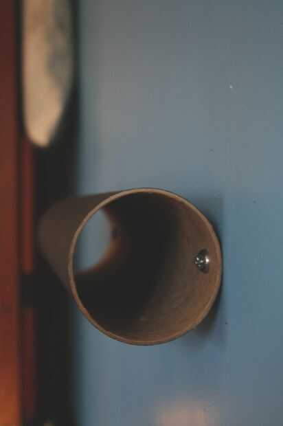 Medir la distancia entre el tornillo y transferir esa medida a la pared. Elegir una altura que se sienta cómoda. Mina sintió en unos 49 1/2". Perfore agujeros para los tornillos en la pared y coloque los anclajes en caso de necesidad. Deslice una arandela en cada uno de los tornillos y Monte el tubo a la pared.