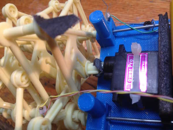He adjuntado la impresión 3D Base que he creado. Las barras de metal que sujetan las Asambleas las piernas pasan por los agujeros. Ya había conectado el servo al cigüeñal. He utilizado masilla de epoxy. Creo que usted podría hacer un trabajo más ordenado y más eficiente si se utiliza un acoplador de servo. He añadido un par de enlaces para posibles partes que pueden ser 3D impreso.