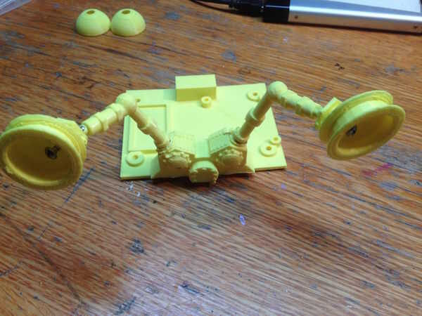 En mi primera iteración, utilicé espuma, alambre y un par de bolas de plástico para hacer los "ojos" para sostener las fotocélulas. Pero fue bonito ghetto.