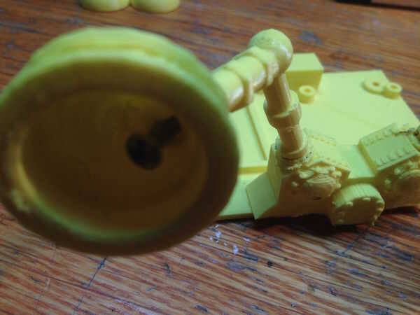 Usé la función de escala para ampliar el montaje ojo porque pensé que parecía demasiado debilucha y fuera de proporción. Ya había conectado las fotocélulas, así que perforé un orificio en la parte posterior que ojos para correr a través.